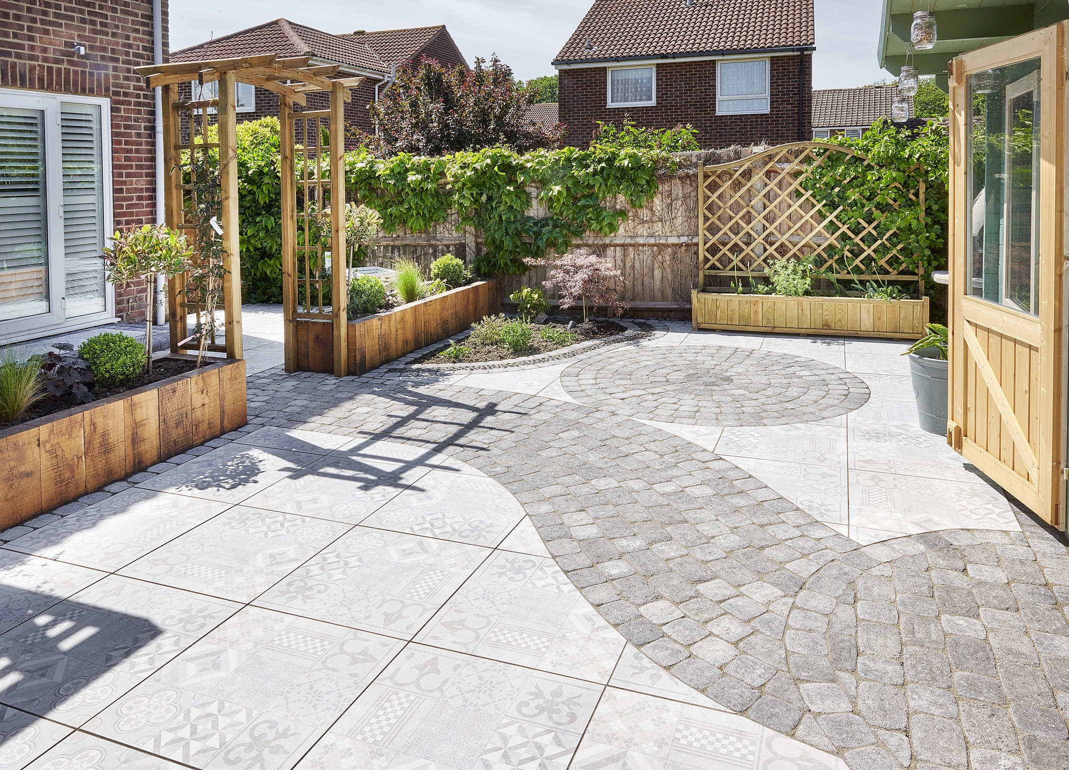 We can provide you with multiple paving choices, including standard herringbone patterns to basket-weave, stretcher bond paving, paving circles and other unique paving features.